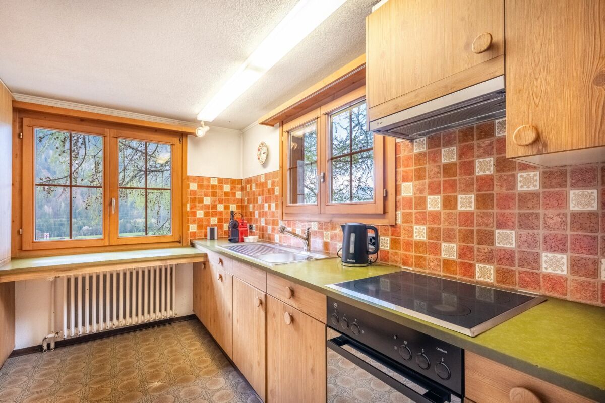 Das Chalet ist mit praktischen Einbauschränken ausgestattet und garantiert so eine aufgeräumte und funktionale Atmosphäre. Trotz der ruhigen, erhöhten Lage ist es bestens an die Infrastruktur des umliegenden Gebiets angebunden. In nur wenigen Gehminuten erreichen Sie Geschäfte des täglichen Bedarfs, öffentliche Verkehrsmittel, Schulen und Arztpraxen. Dank der ausgezeichneten Anbindung an die Autobahn und das öffentliche Verkehrsnetz sind Städte wie Chur und Zürich schnell erreichbar. Für Wintersportbegeisterte bietet das nahegelegene Skigebiet Davos-Klosters ein breites Angebot an Aktivitäten.