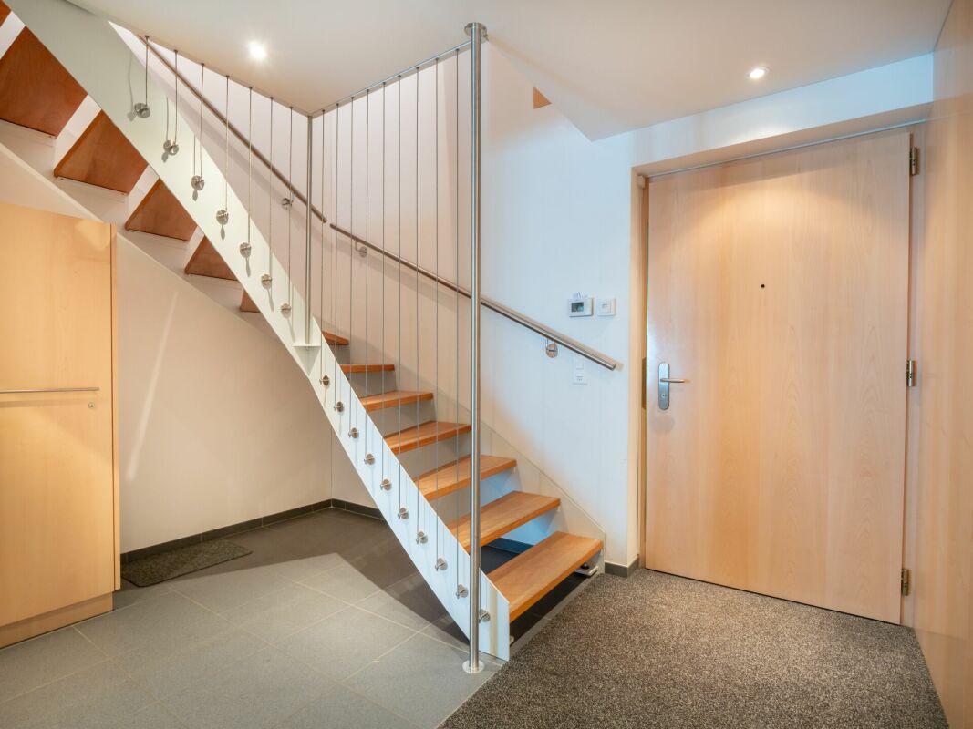 Über die Treppe im Eingangsbereich gelangen Sie ins obere Geschoss, wo links und rechts je ein Raum