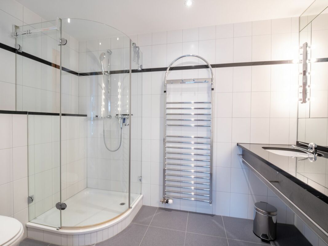 und einer geräumigen Dusche.