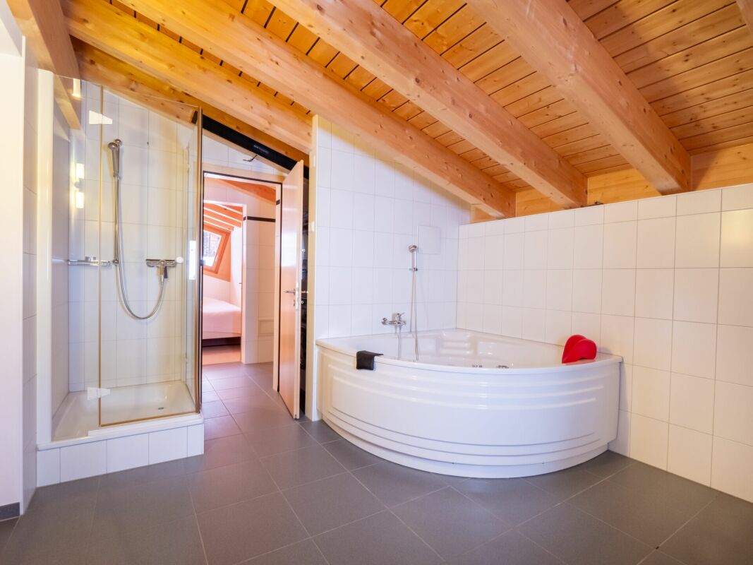 Ein besonderes Highlight ist das Wellnesszimmer mit großem Whirlpool und Dusche, welches geschickt
